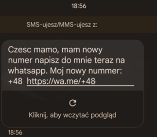 Criminals prepared a phishing campaign in which they impersonated a family member. They sent SMS messages, requesting to continue the conversation on WhatsApp. Then, through text conversations, they persuaded the victim to make a transfer to a bank account number they provided. These were bank accounts managed by the criminals.