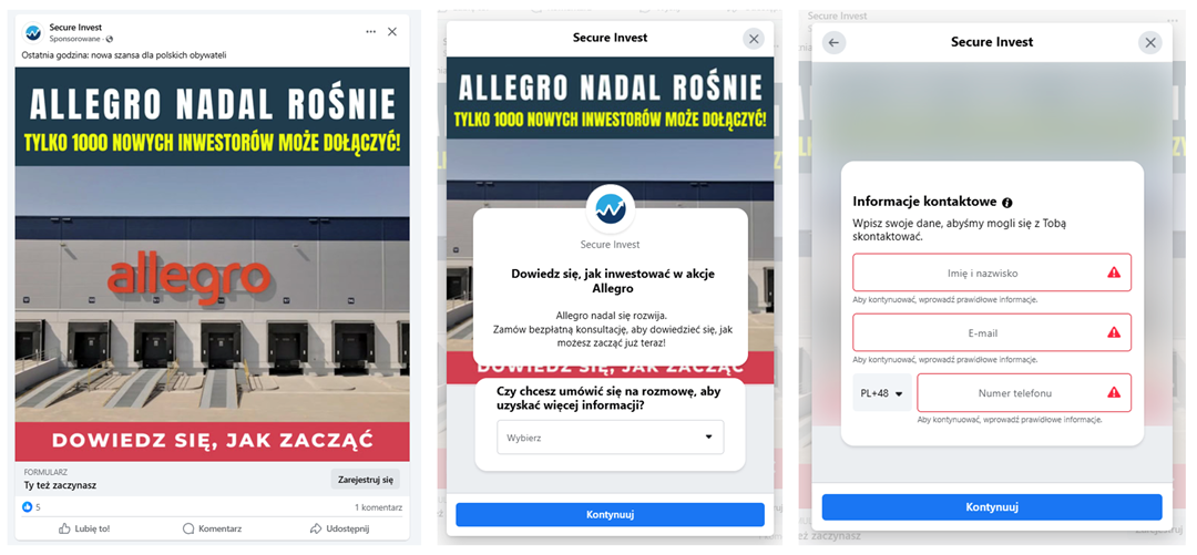 Figure 2 Fake Invest - contact data phishing pages