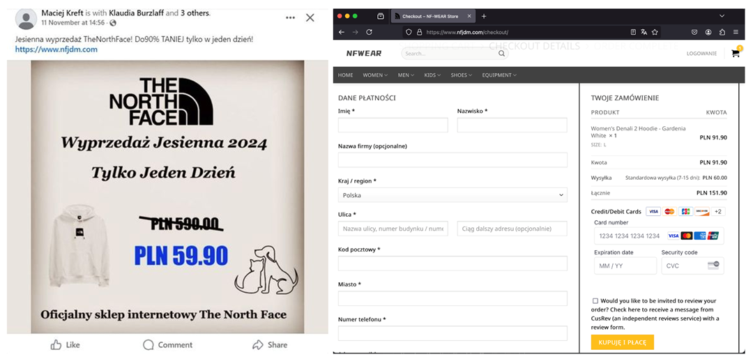 Taking advantage of the busy shopping season, cybercriminals created fake stores, impersonating well-known brands. They distributed information about these stores through social media ads, enticing users with sales and promotions. In reality, the goal was to steal payment card details.