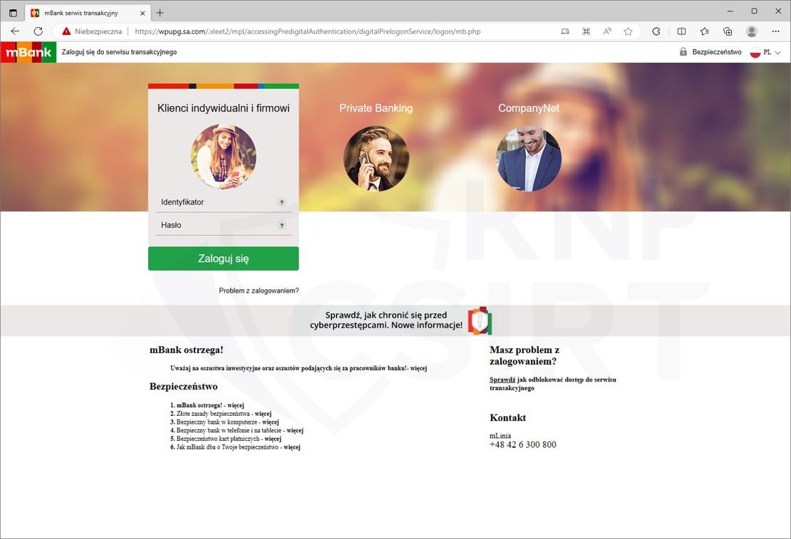 Rysunek 4 Fałszywa strona podszywająca się pod mBank