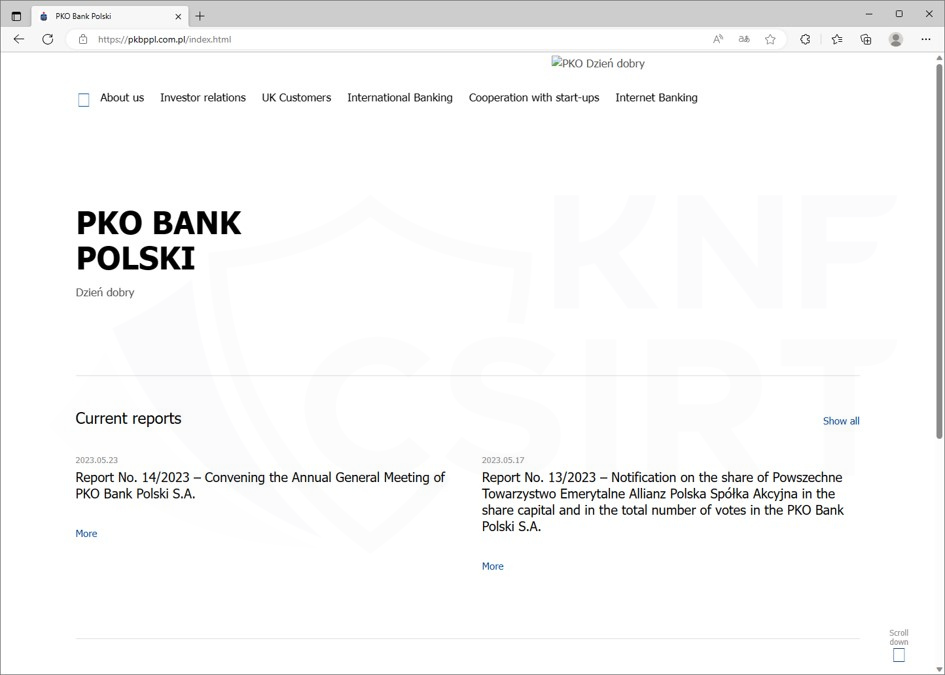 W czerwcu 2023 roku zidentyfikowaliśmy kilka kampanii podszywającej się pod polskie banki. Przestępcy mieli na celu wyłudzanie danych logowania do bankowości elektronicznej i/lub wrażliwe dane.