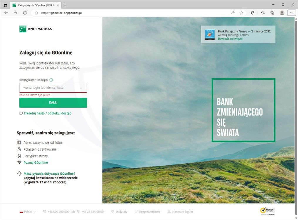 Rysunek 5 Fałszywa strona podszywająca się pod Bank BNP PARIBAS