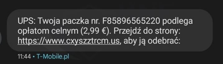 Rysunek 18 Wiadomość SMS podszywająca się pod UPS
