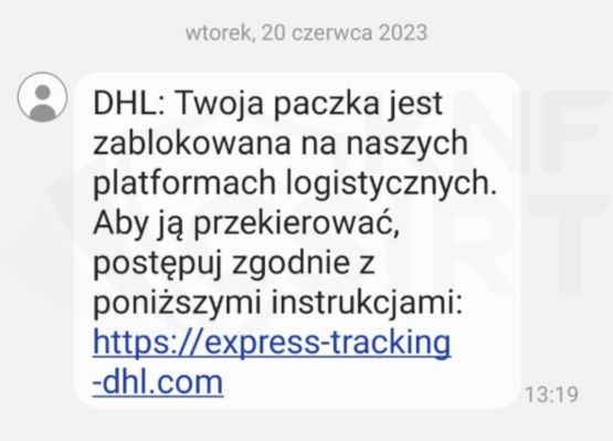 Rysunek 17 Wiadomość SMS podszywająca się pod DHL