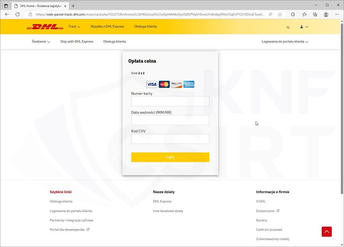Rysunek 19 Strona phishingowa podszywająca się pod DHL