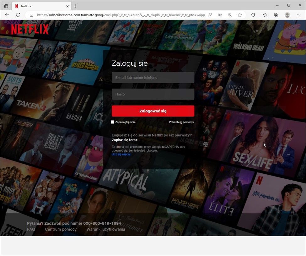 Rysunek 31 Strona phishingowa podszywająca się pod Netflix
