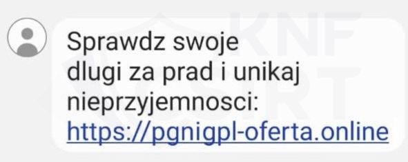 Przykładowa wiadomość SMS rozsyłana w ramach kampanii phishingowej (rys. 8):