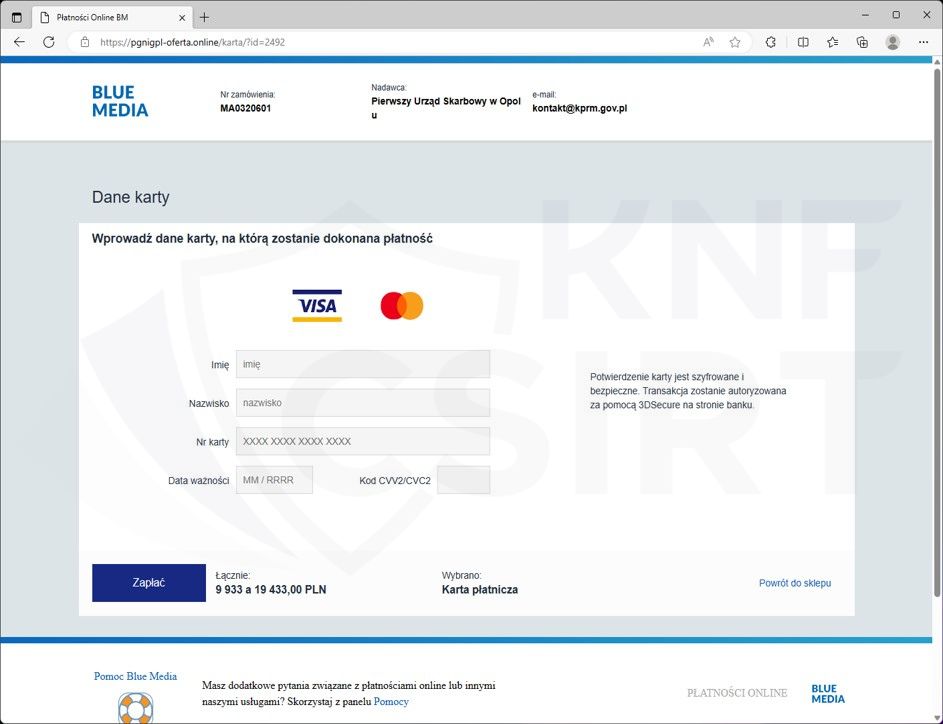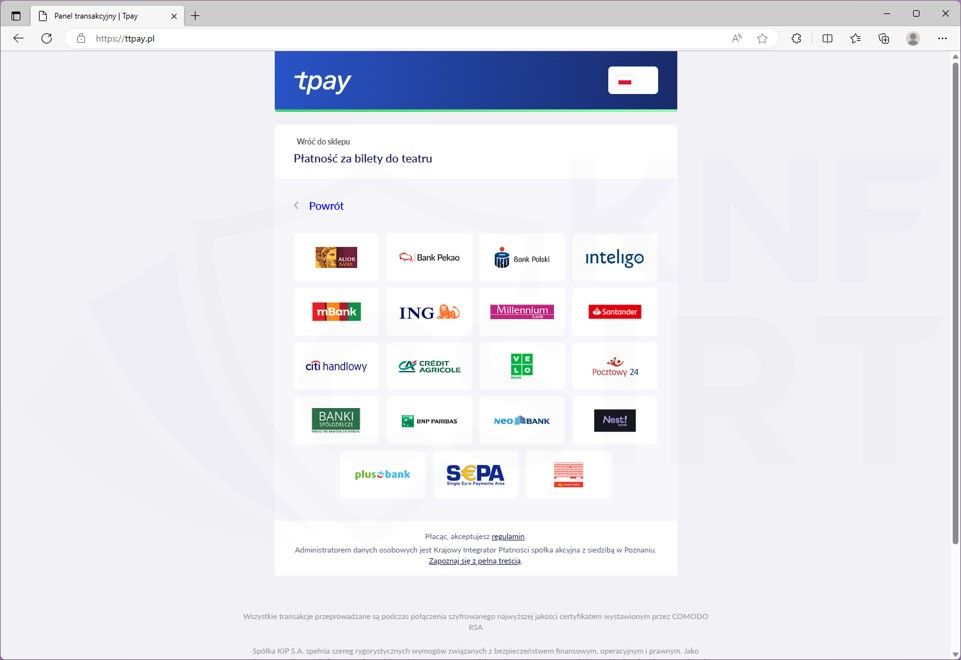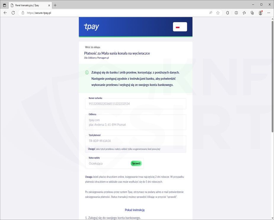KROK 3 - Przykładowa strona podszywająca się pod TPAY (str. 23):
