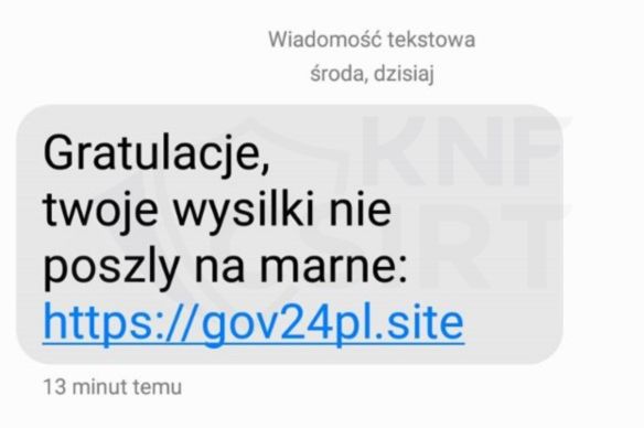 Rysunek 13 Wiadomość SMS podszywająca się pod GOV