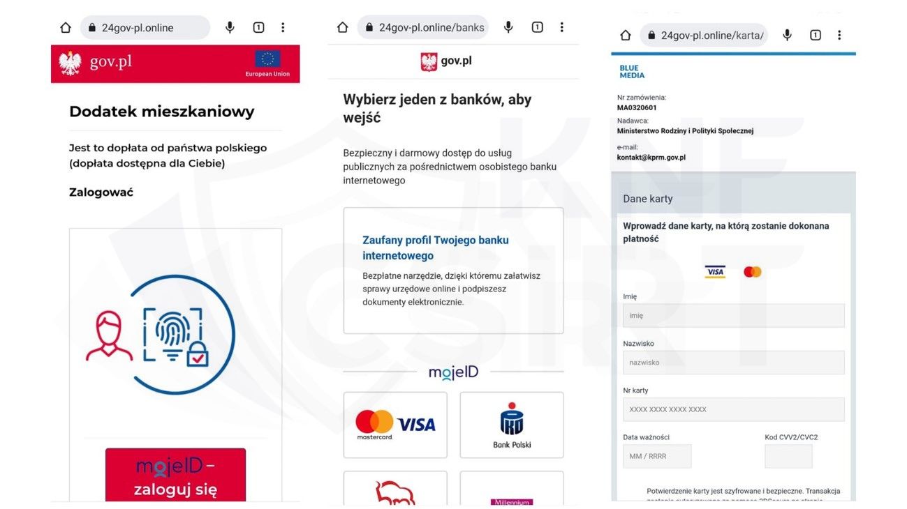 Cyberprzestępcy podszywając się pod strony rządowe oraz Zakład Ubezpieczeń Społecznych rozsyłali wiadomości SMS, w których pod różnymi pretekstami (najczęściej możliwości otrzymania korzyści finansowych) starali się zachęci do kliknięcia w link. Prowadziły one do fałszywych stron, na których przestępcy wyłudzali informacje osobowe, dane kart płatniczych (numer karty, kod CVV, datę ważności, kod 3DSecure) i/lub poświadczenia logowania do bankowości elektronicznej.
