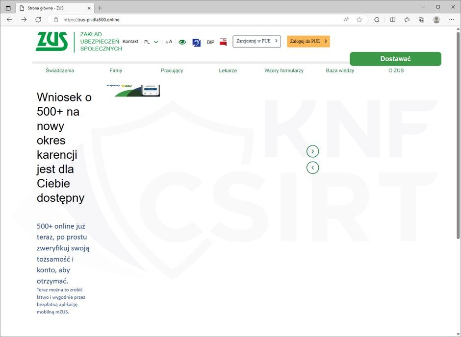 Rysunek 16 Strona phishingowa podszywająca się pod ZUS 2/2