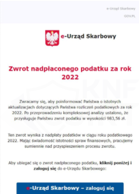 Zwrot podatku, czyli podszycie pod GOV