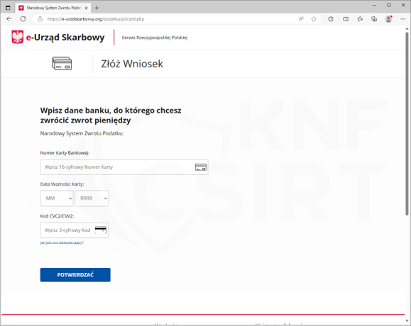 Podobnie jak w listopadzie 2023 roku, również w grudniu zaobserwowaliśmy i analizowaliśmy kampanię, w której przestępcy postanowili wykorzystać jeszcze motyw rozliczenia podatkowego za rok 2022. Tym samym próbując ponownie wyłudzić dane kart płatniczych.