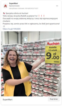 - fałszywe reklamy Facebook oraz wiadomości e-mail,