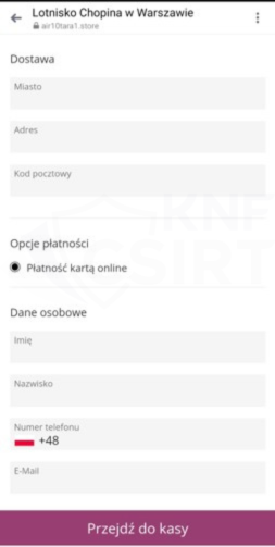 rys. 11 Strona phishingowa - podszycie pod KFC