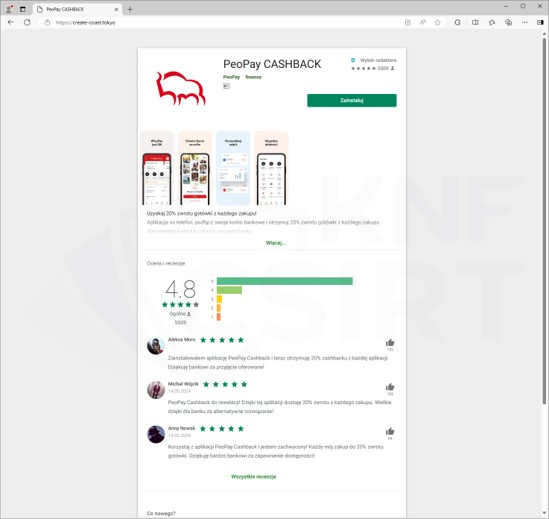 - fałszywą aplikację Peopay Cashback,