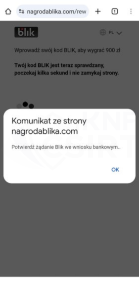 rys. 10 Strona phishingowa podszywająca się pod BLIK