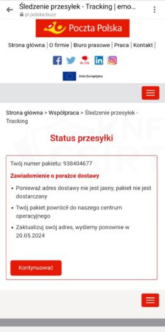 Cyberprzestępcy podszywając się pod Pocztę Polską, informowali o rzekomej konieczności aktualizacji adresu. W rzeczywistości wyłudzali dane kart płatniczych. Podobna kampania phishingowa już kilkukrotnie miejsce w latach 2023 i 2024.
