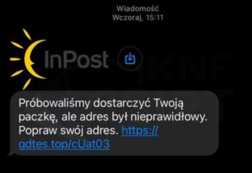 rys. 18 Wiadomość SMS podszywająca się pod InPost