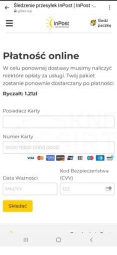 Przestępcy podszywając się pod firmy kurierskie, tym razem wykorzystywali wizerunek InPost, informowali o rzekomej konieczności uzupełnienia adresu dostawy. Tym sposobem zachęcali do kliknięcia w link, który w rzeczywistości prowadził do strony phishingowej. W ten sposób oszuści chcieli pozyskać informację o danych kart płatniczych.