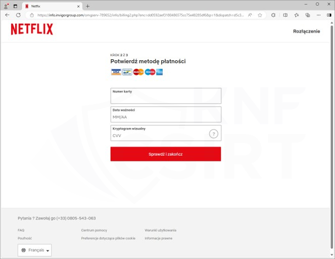 rys. 21 Strona phishingowa - podszycie pod Netflix