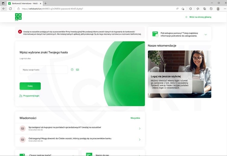 Rysunek 9 Fałszywa strona podszywająca się pod VeloBank