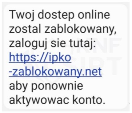 SMSOWA KAMPANIA PHISHINGOWA PODSZYWAJĄCA SIĘ POD BANK PKO BP - BLOKADA DOSTĘPU