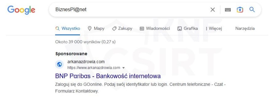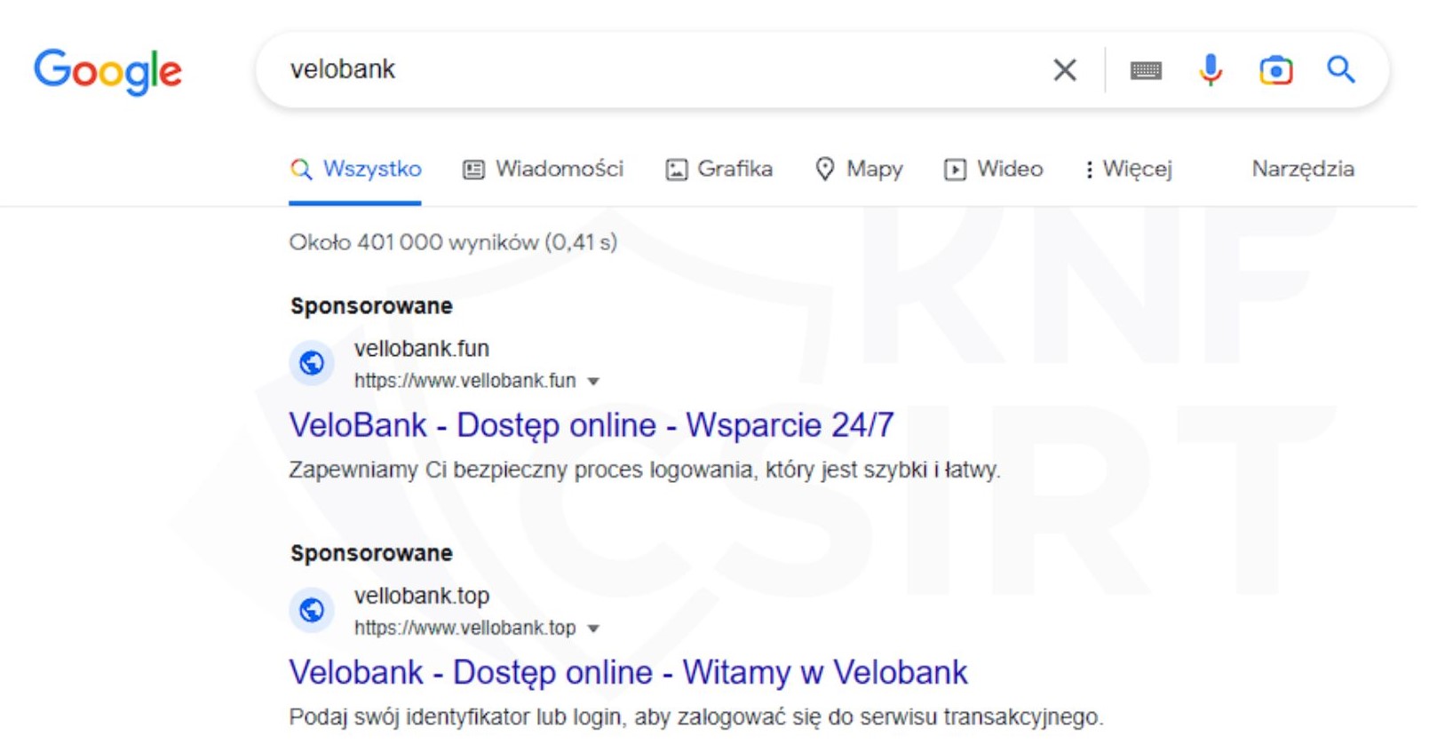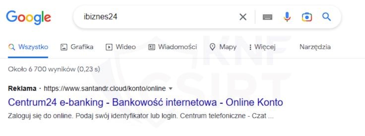 FAŁSZYWE REKLAMY W WYSZUKIWARCE GOOGLE PODSZYWAJĄCE SIĘ POD BANKI