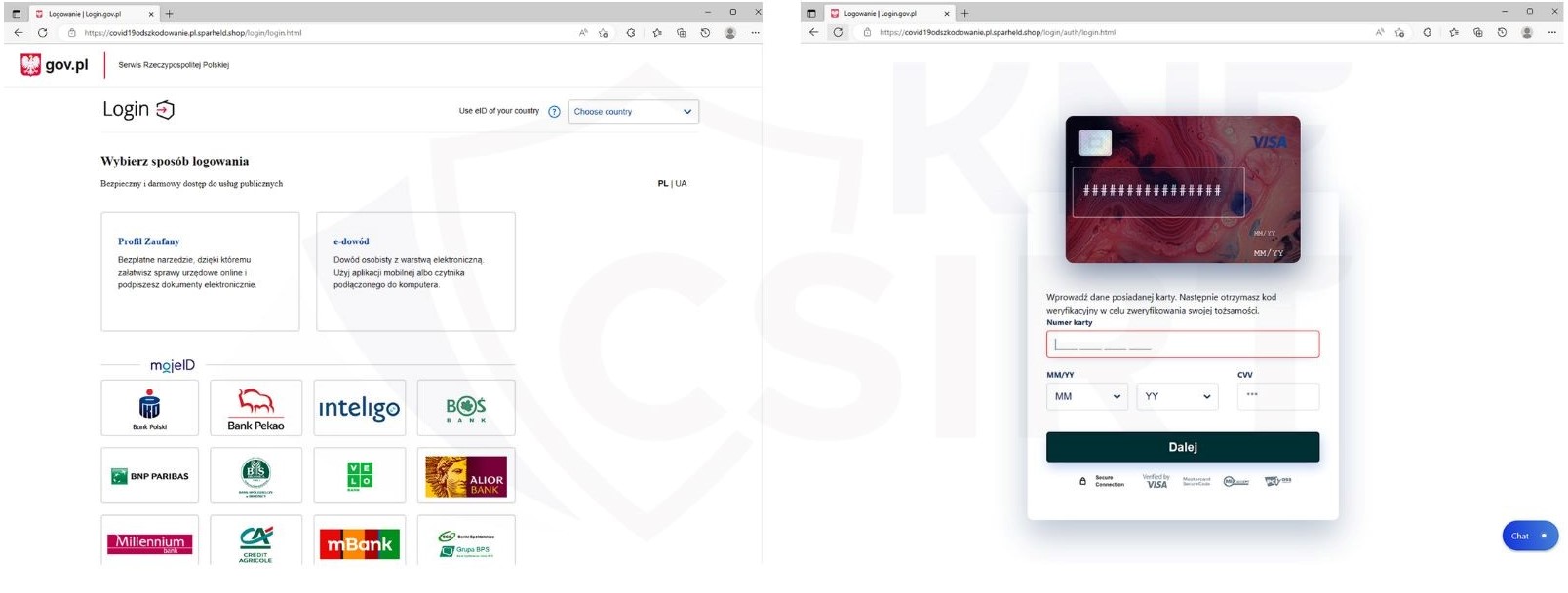 Rysunek 20 Strony phishingowa podszywające się pod GOV, wyłudzające dane karty płatniczej