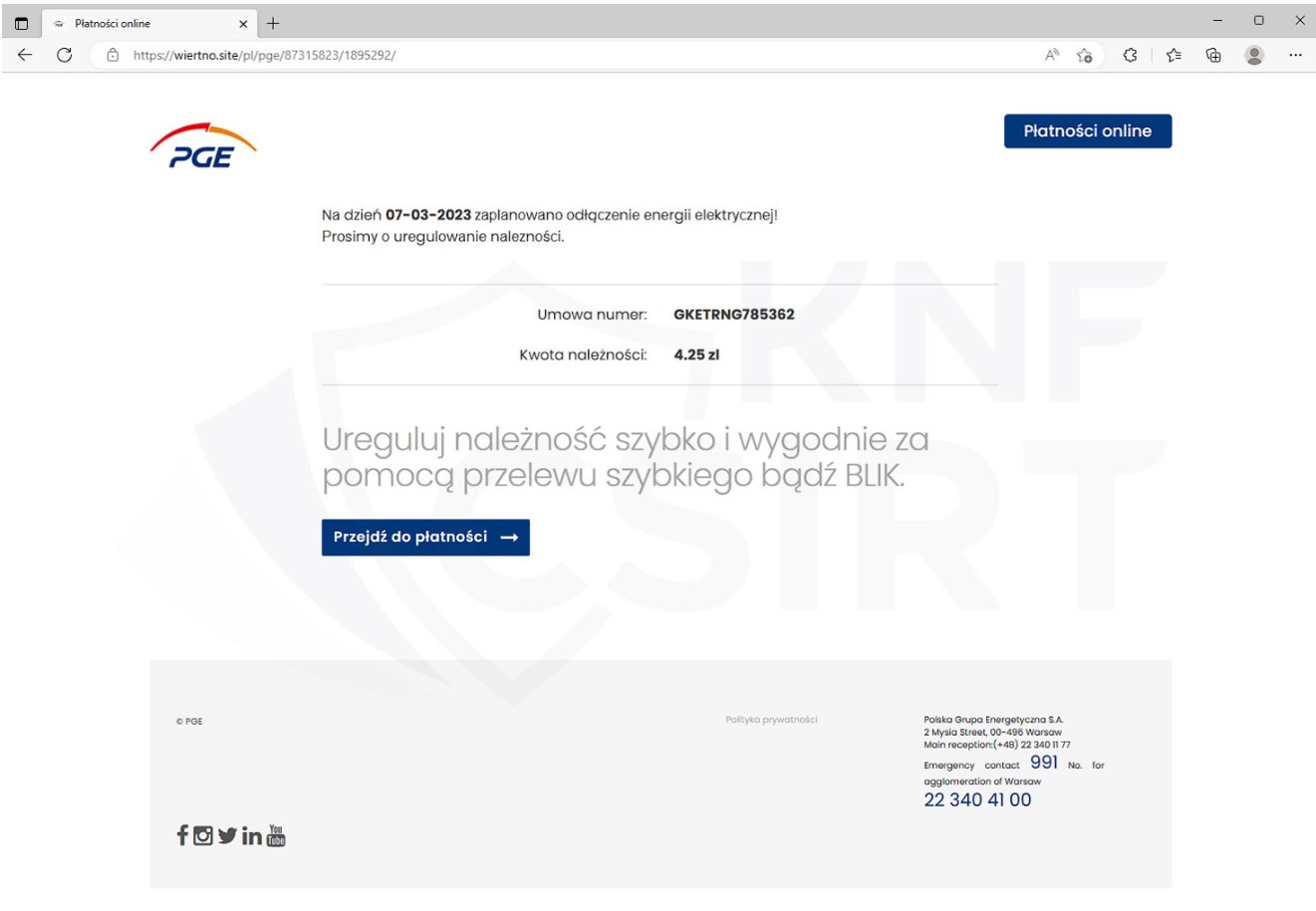 Rysunek 22 Strona phishingowa podszywająca się pod PGE