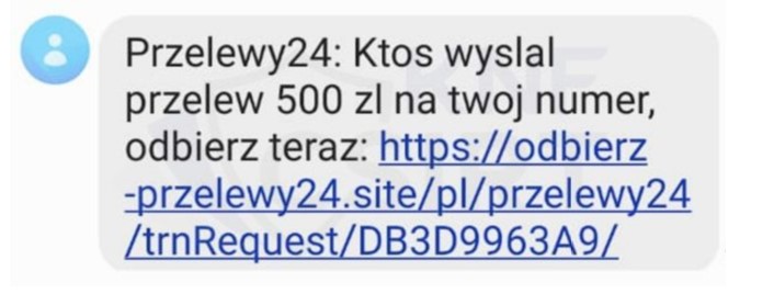 Rysunek 23 Wiadomość SMS podszywająca się pod Przelewy24
