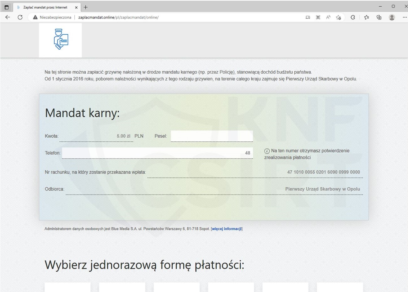 Rysunek 26 Strona phishingowa podszywająca się pod Policję
