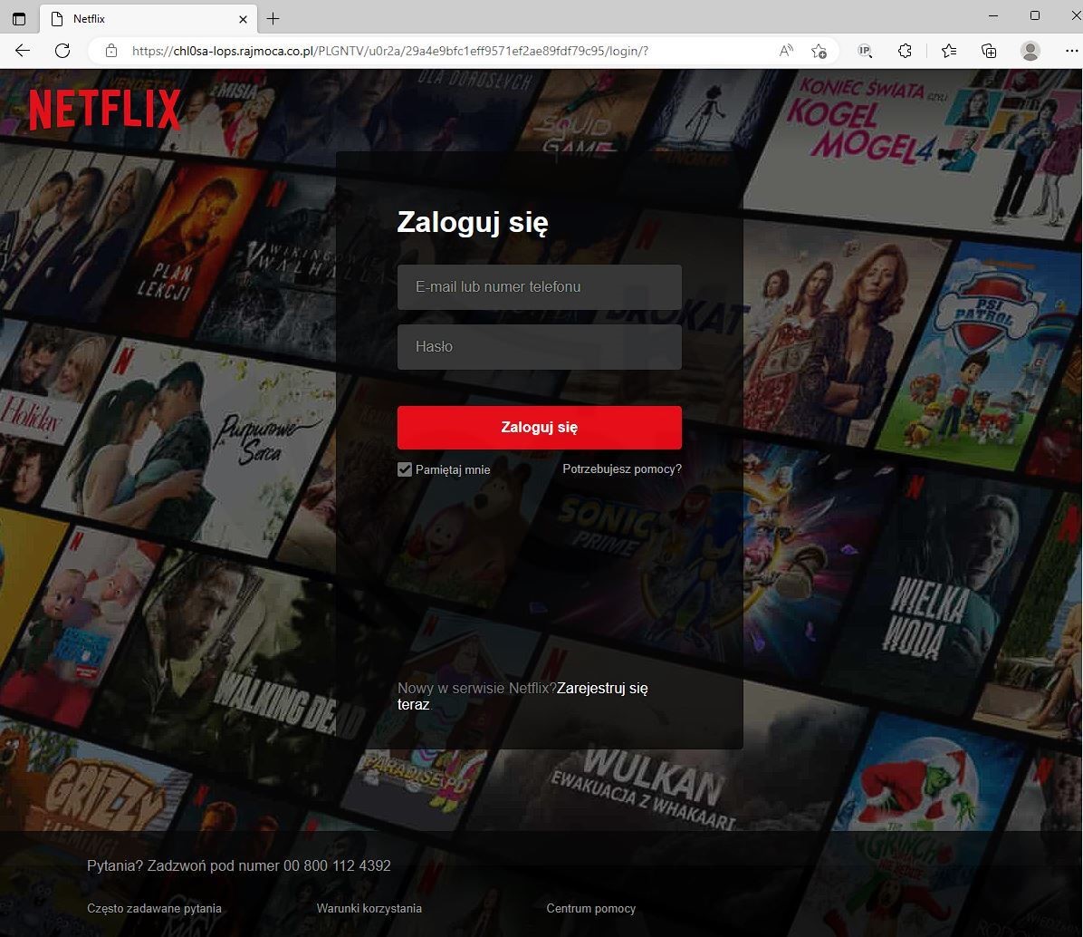 Rysunek 31 Strona podszywająca się pod Netflix - wyłudzenie danych logowania
