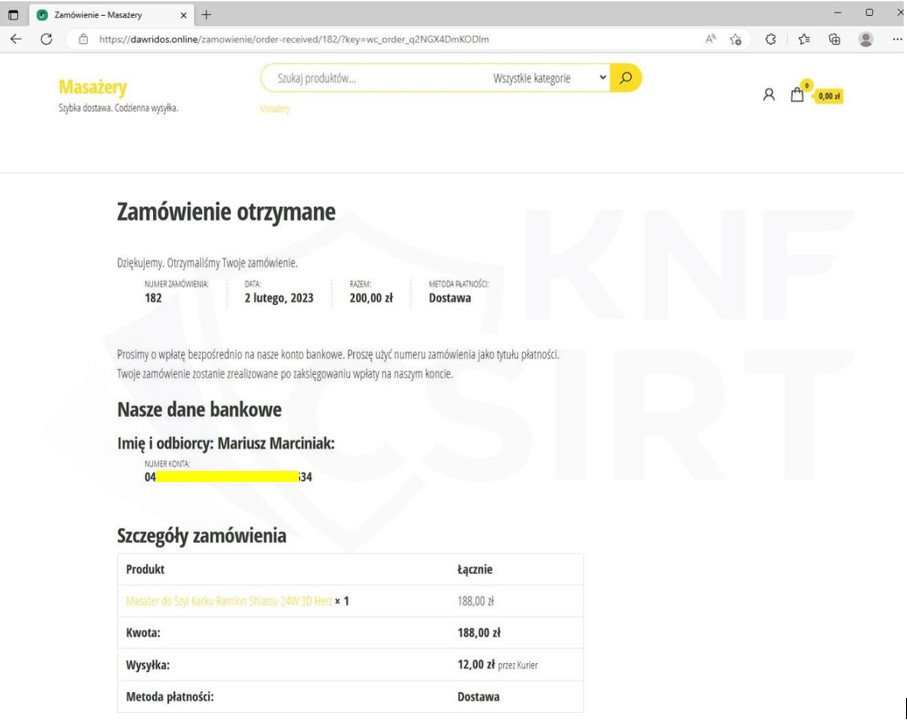 Kolejne zidentyfikowane fałszywe sklepy oferujące produkty w zadziwiająco konkurencyjnych cenach. Przy próbie finalizacji zakupów użytkownik otrzymuje informacje o rachunku bankowym, na który ma dokonać przelew.