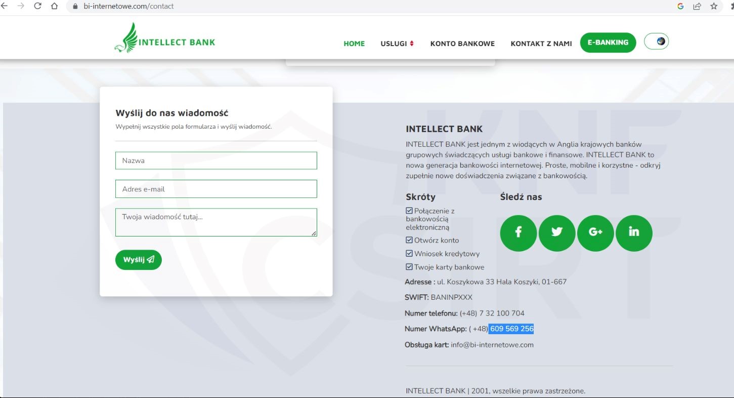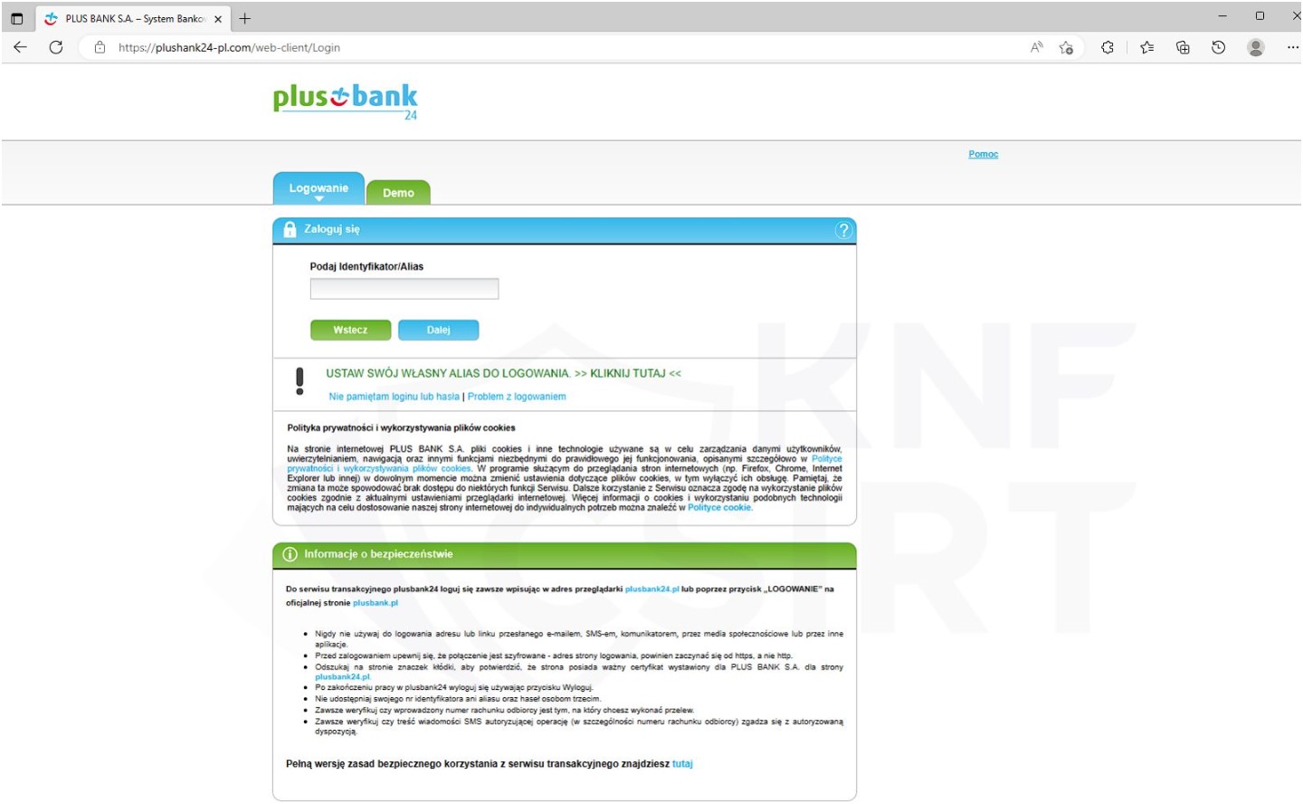 Rysunek 8 Fałszywa strona podszywająca się pod Plus Bank