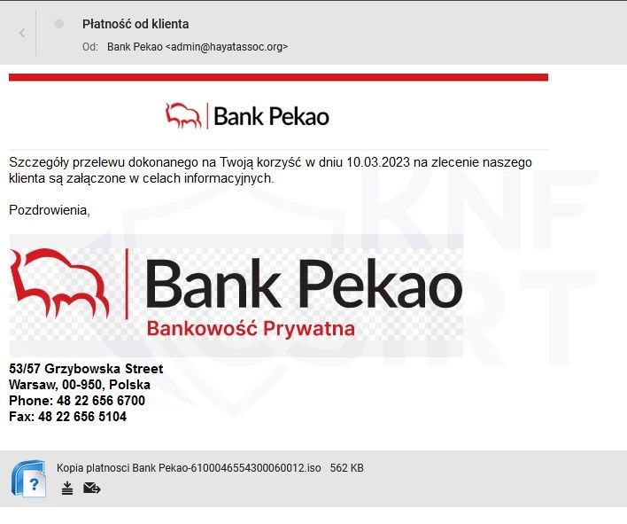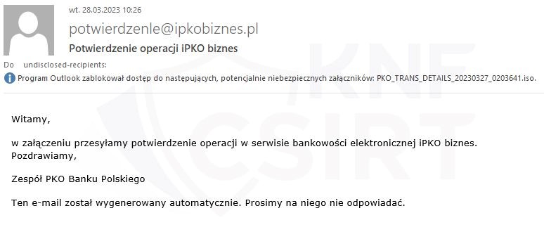 Rys, 38 Wiadomość e-mail podszywająca się pod PKO BP, dystrybucja złośliwego oprogramowania