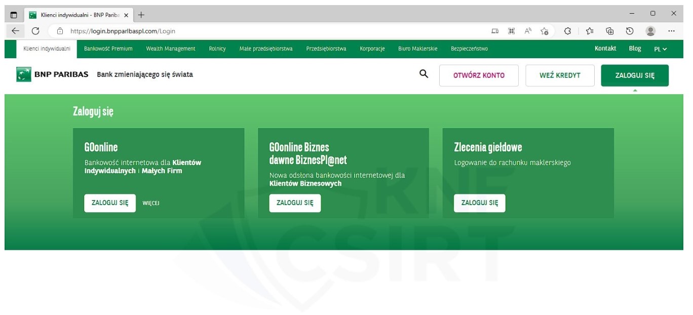 Rysunek 6 Fałszywa strona podszywająca się pod Bank BNP Paribas