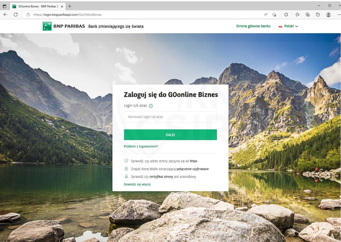 Rysunek 5 Fałszywa strona podszywająca się pod Bank BNP Paribas