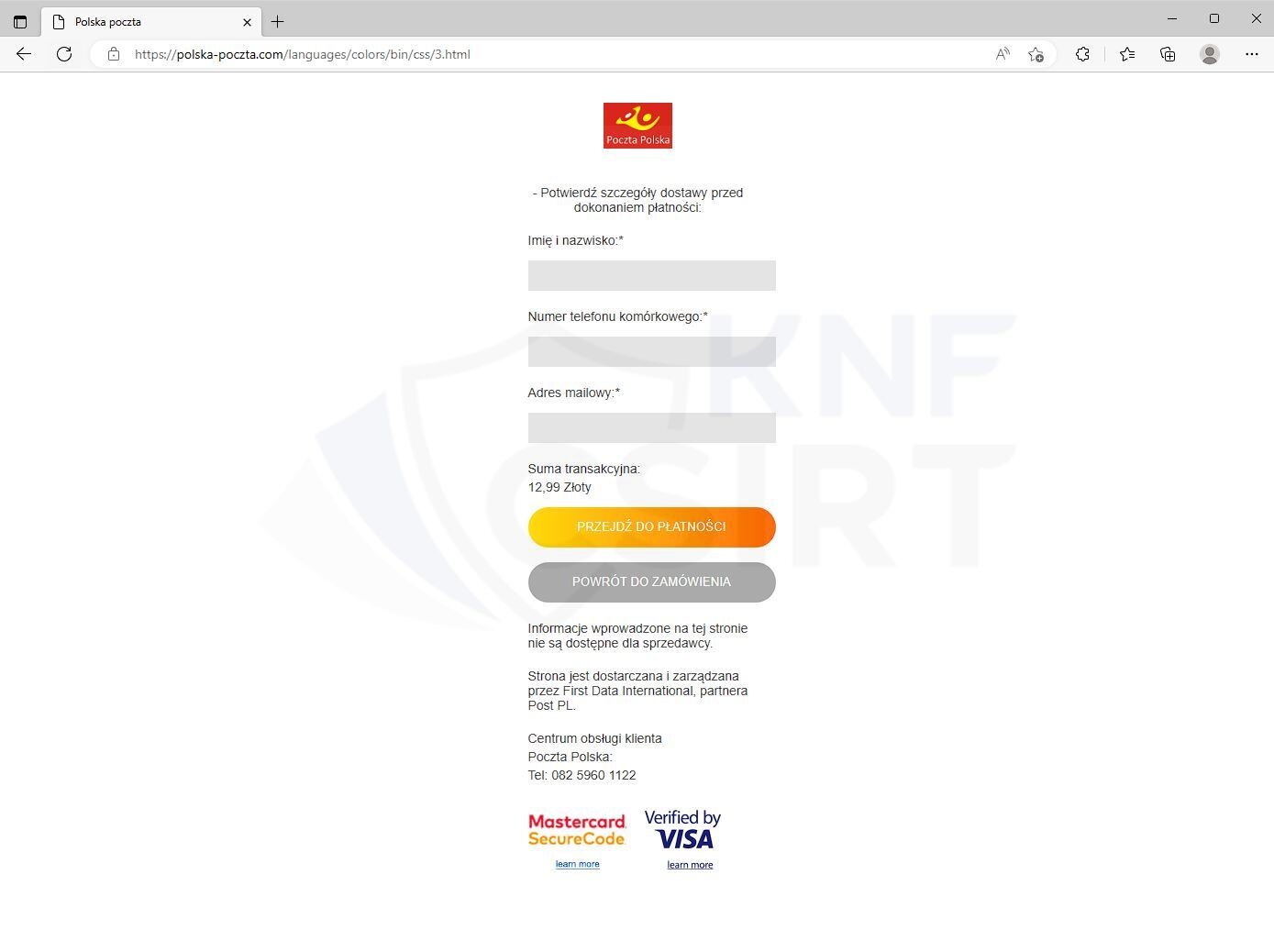 Przykład strony phishingowej: