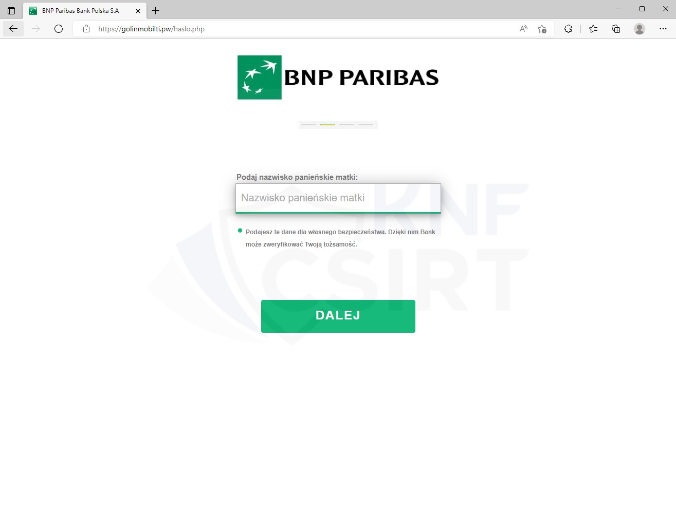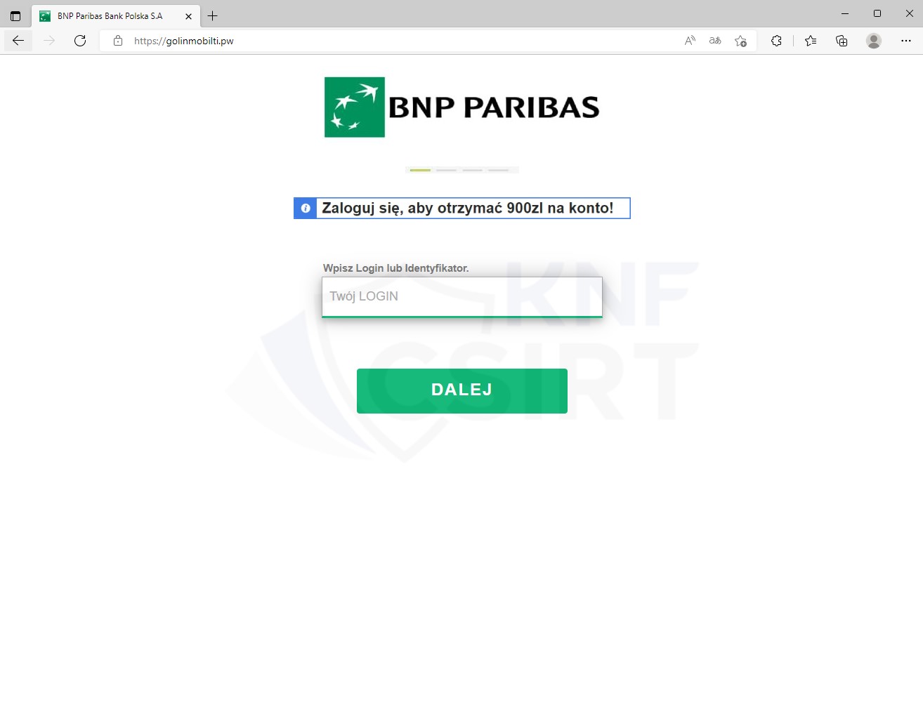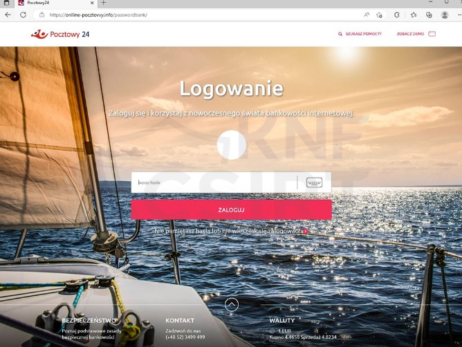 Atakujący przygotowali również fałszywą stronę wyłudzającą dane logowania do bankowości elektronicznej: