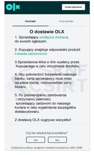 Następnie wystawiający ogłoszenie otrzymuje instrukcję dalszego postępowania (rys. 3) oraz link do strony phishingowej.