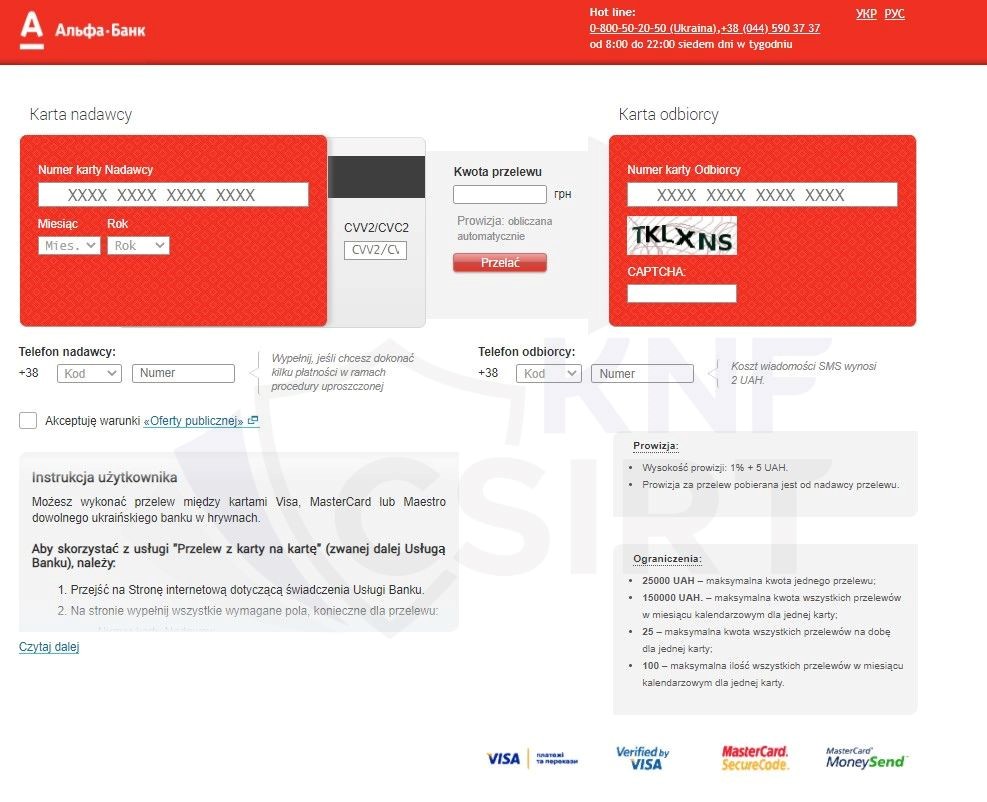 Rysunek 4 Przykład wyglądu stron wyłudzających dane kart płatniczych